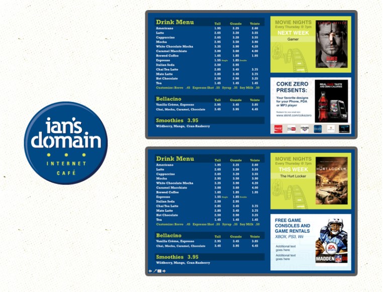 Design 29 Thursday Sep 2011 Original size at 800 × 610 ≈ Leave a comment Ian’s Domain TV Screen Menus Client: HFS Food Services Share this: Share on X (Opens in new window) X Share on Facebook (Opens in new window) Facebook Like Loading...